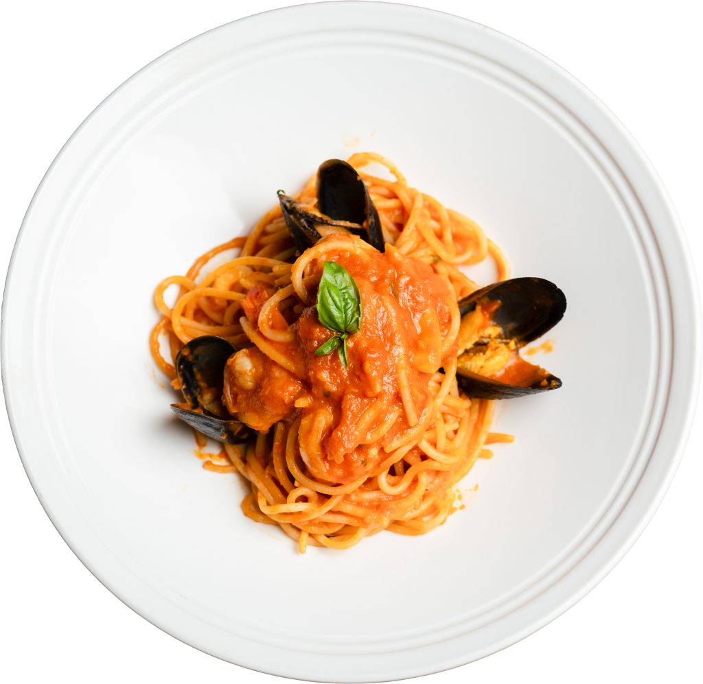 Spaghetti with Tomato Sauce, Garlic, Chilli, Shrimps, Mussels and Calamari
